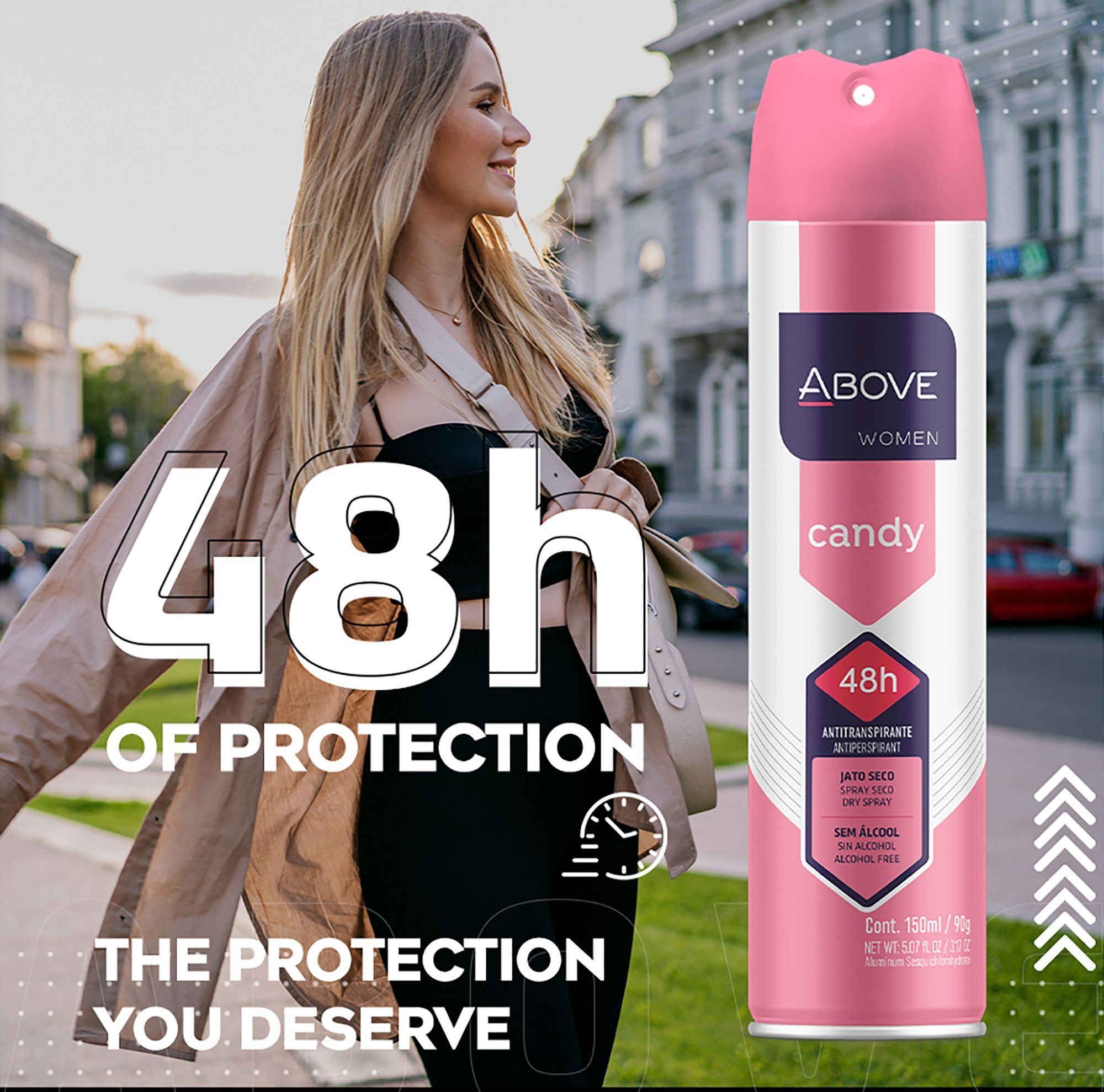 ABOVE Candy - 48 Hours Antiperspirant Deodorant - Dry Spray for Women - Notes of Lime, Tangerine and Apricot - Protects Against Sweat and Body Odor - Stain and Cruelty Free - 150 ml