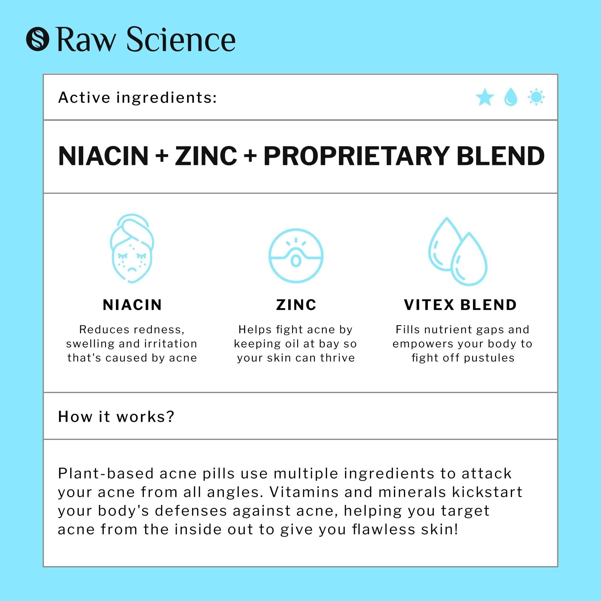 2.hormonal acne supplements for women & men: life throws women or mens acne at any age, and you have to act quickly. our niacin+ zinc acne supplements for skin make it easy to help in cystic acne treatment for teens and leave breakouts in the rearview mirror.