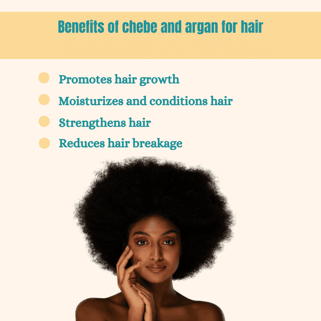 Chebe Infusion: Harnesses the traditional secrets of Chebe, a natural ingredient renowned for its hair-strengthening properties, to promote stronger, more resilient hair.
