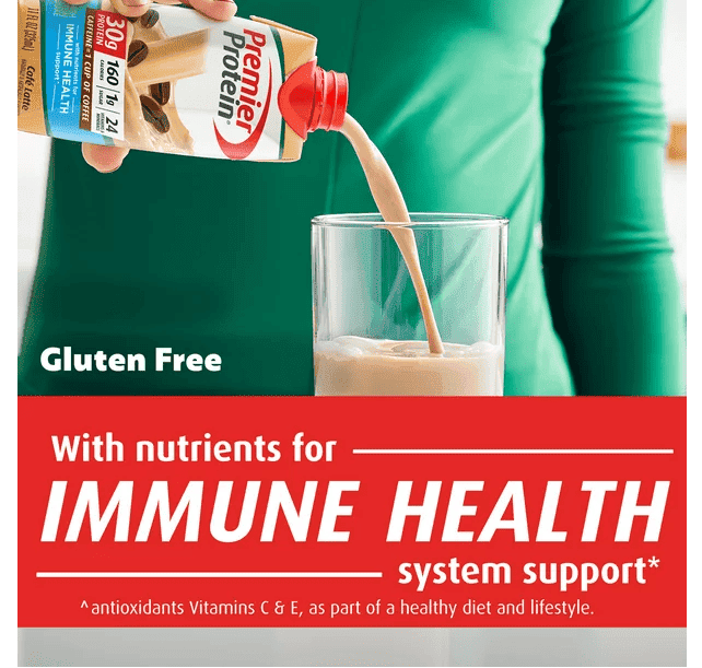 Café Latte 30g Protein Shake has caffeine = 1 cup of coffee to start your day. Each Premier Protein shake contains 30 grams of protein; complete with all of the essential amino acids; 1g of sugar; 5g carbs; 160 calories; 24 vitamins & minerals; and is also low in fat. We use a proprietary blend of milk protein; casein and whey protein in our shakes to help fuel muscles quickly and for several hours to help support your goals. Enjoy a shake in the morning or as a healthy satisfying snack. They are perfect for breakfast on-the-go; an afternoon snack; or as pre- or post-workout fuel. They are delicious as is; but are also highly customizable. Try blending with your favorite fruits and vegetables for a delicious smoothie or adding to cereal or oatmeal. Available in five delicious smooth and creamy flavors: Café Latte; Chocolate; Vanilla; Caramel; Cookies & Cream.