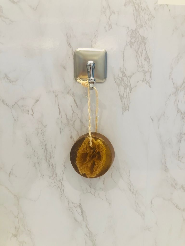 -LOOFAH soap on a rope; the natural loofah helps gently exfoliate.