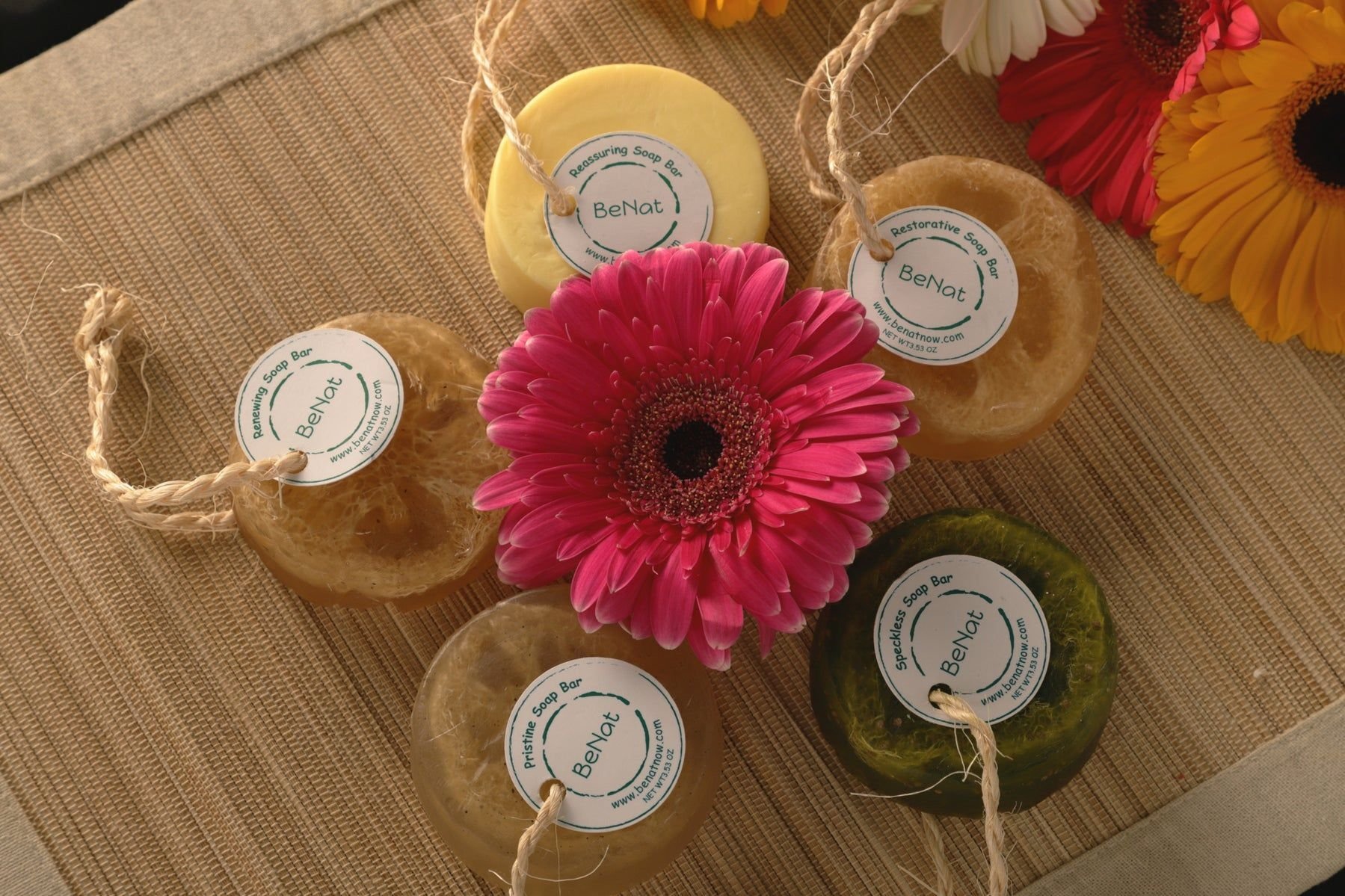 -NATURAL INGREDIENTS. Healthy-looking skin requires the best products in your daily routine. Restorative Soap Bar is the best way to cleanse and soothe your body. Enriched with natural ingredients like oat; olive; and coconut oil. This Soap Bar cleanses; exfoliants; and moisturizes naturally. The package includes a loofah and hanging cord.
