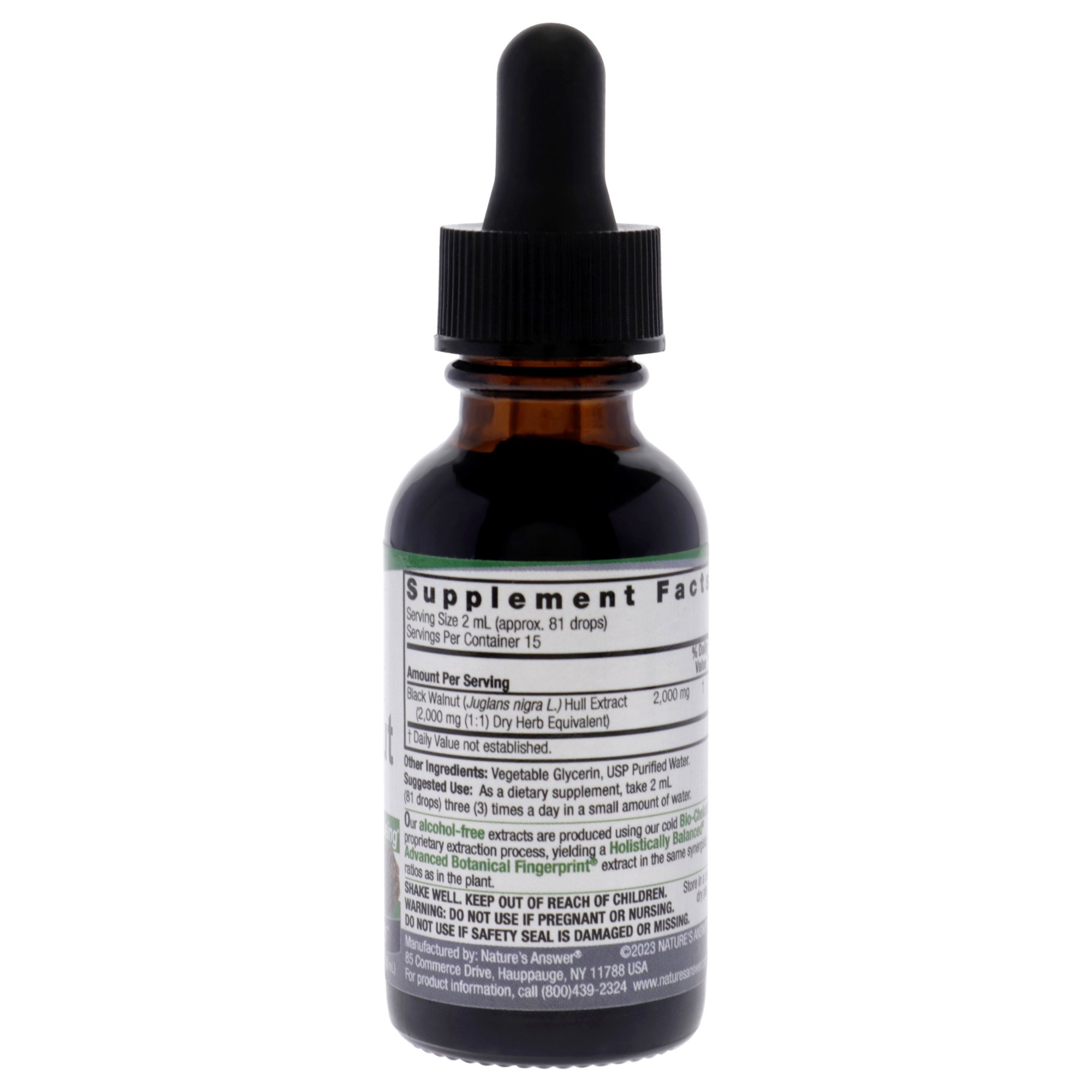 Made from 2,000 mg of Black Walnut Hull Extract per serving. Not to be confused with less potent Tinctures. By using Advanced Botanical Fingerprint Technology, Nature�s Answer assures you the quality of each ingredient by identifying the purity of every incoming botanical, only promising you the purest form of each extract in every product.