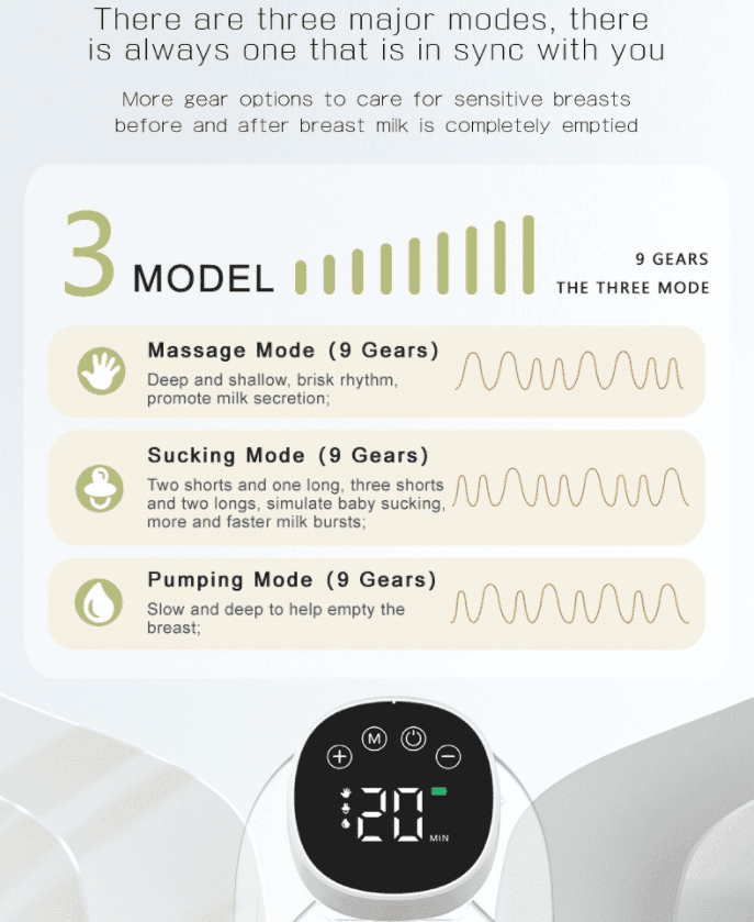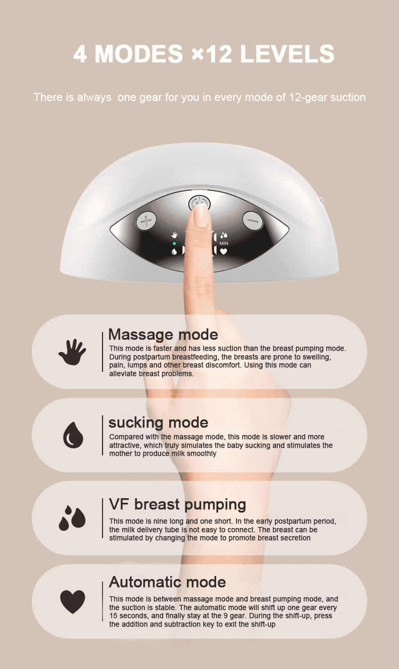 Mode embodiment: no hand support, anti-counterflow design, three-mode switching, simple operation, silent milk absorption