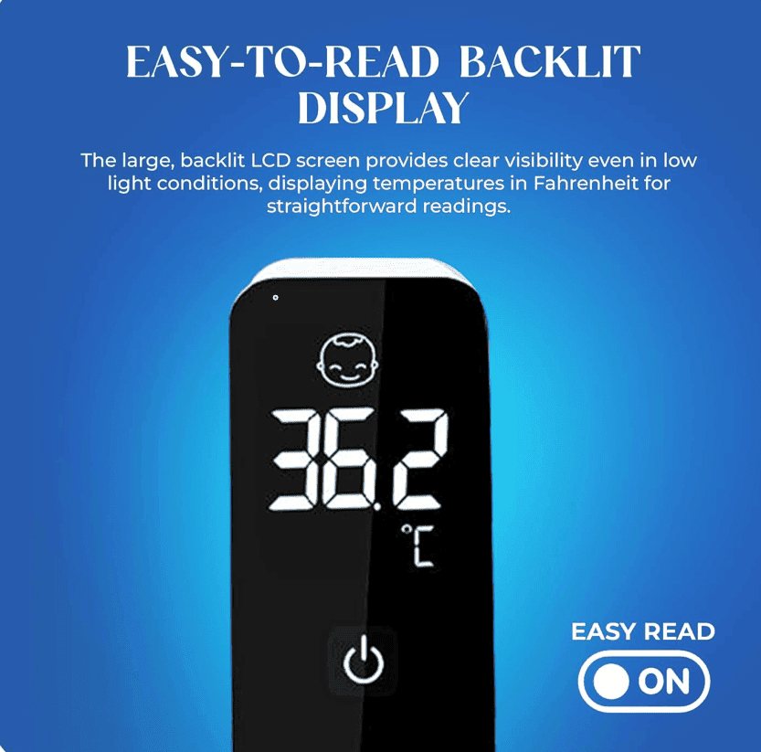 Easy-to-Read Backlit Display: The large, backlit LCD screen provides clear visibility even in low light conditions, displaying temperatures in Fahrenheit for straightforward readings.