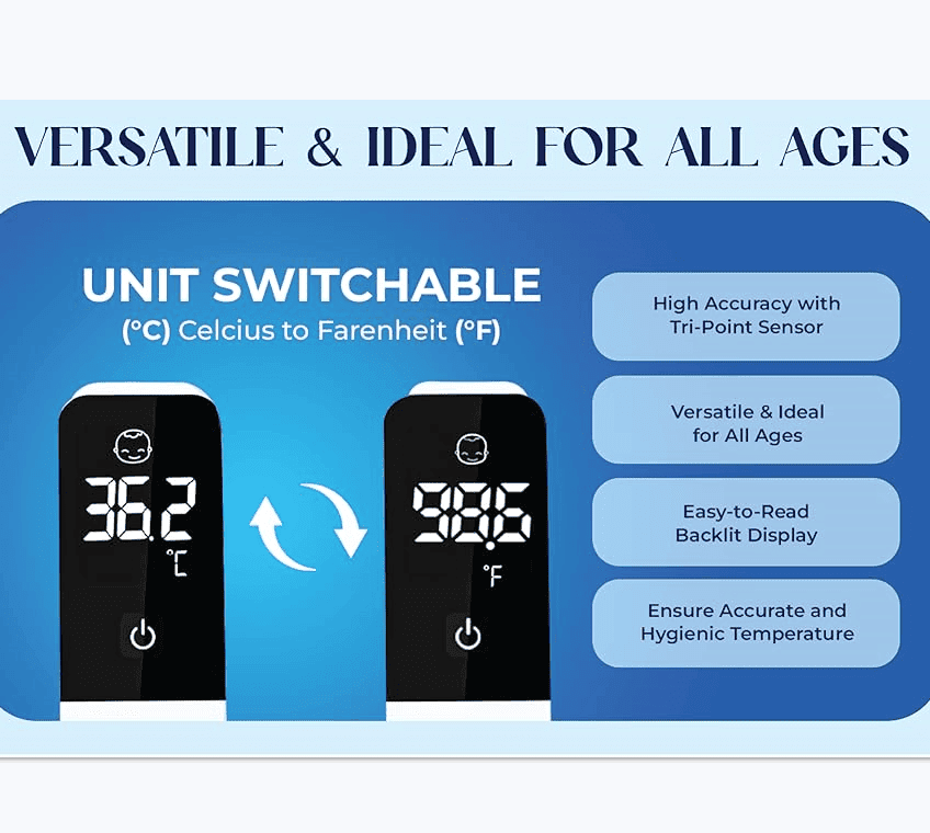 Versatile & Ideal for All Ages: Suitable for infants, children, and adults, this thermometer is perfect for home use, hospitals, hotels, schools, and other settings. Includes 2 AAA batteries, instruction manual, quick user guide, and a 12-month warranty for peace of mind.