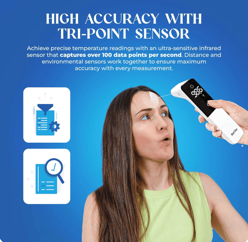 High Accuracy with Tri-Point Sensor: Achieve precise temperature readings with an ultra-sensitive infrared sensor that captures over 100 data points per second. Distance and environmental sensors work together to ensure maximum accuracy with every measurement.