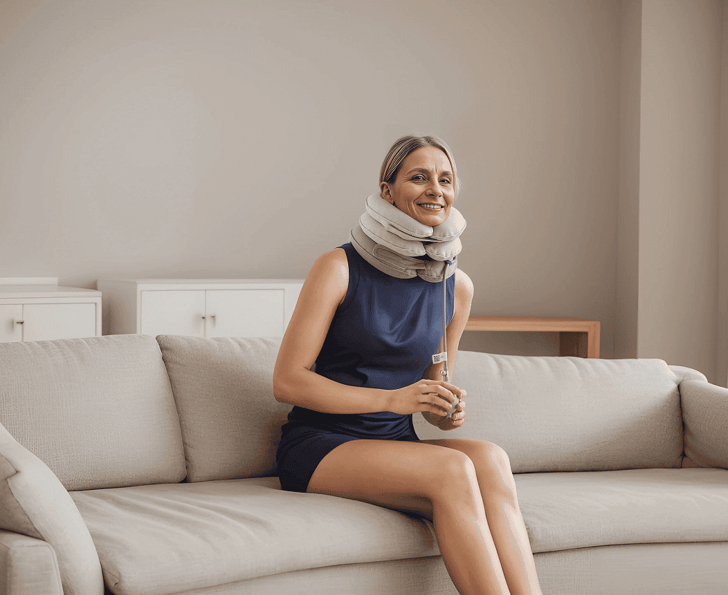 SKU: PSYHJ21A Neck traction fixator neck adjustable device inflatable neck support neck support to prevent cervical hyperextension injury promote local cervical artery blood circulation wearing more comfortable, skin, breathable, fine and soft neck in line with the natural physiological curve of human neck
