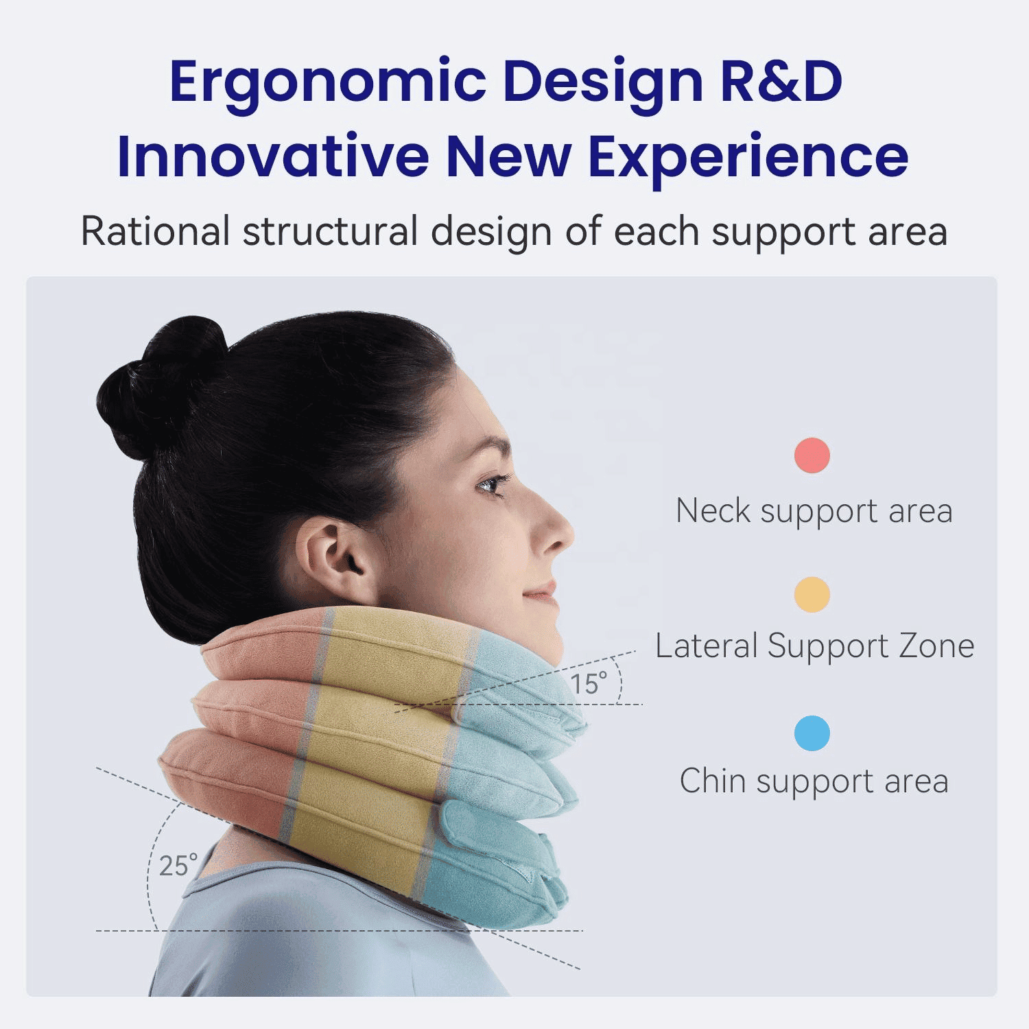 When inflatable forming, the shape conforms to the natural physiological curve of the human neck, prevents the injury of cervical hyper-extension and overexure, promotes local blood circulation, and the blood circulation of cervical artery is smooth