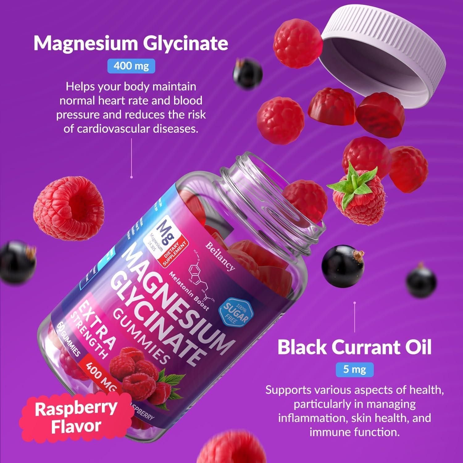 2.ingredients you can trust: these magnesium glycinate gummies for adults contain blackcurrant oil to help you promote overall well-being; each magnesium gummy is sugar-free, non-gmo