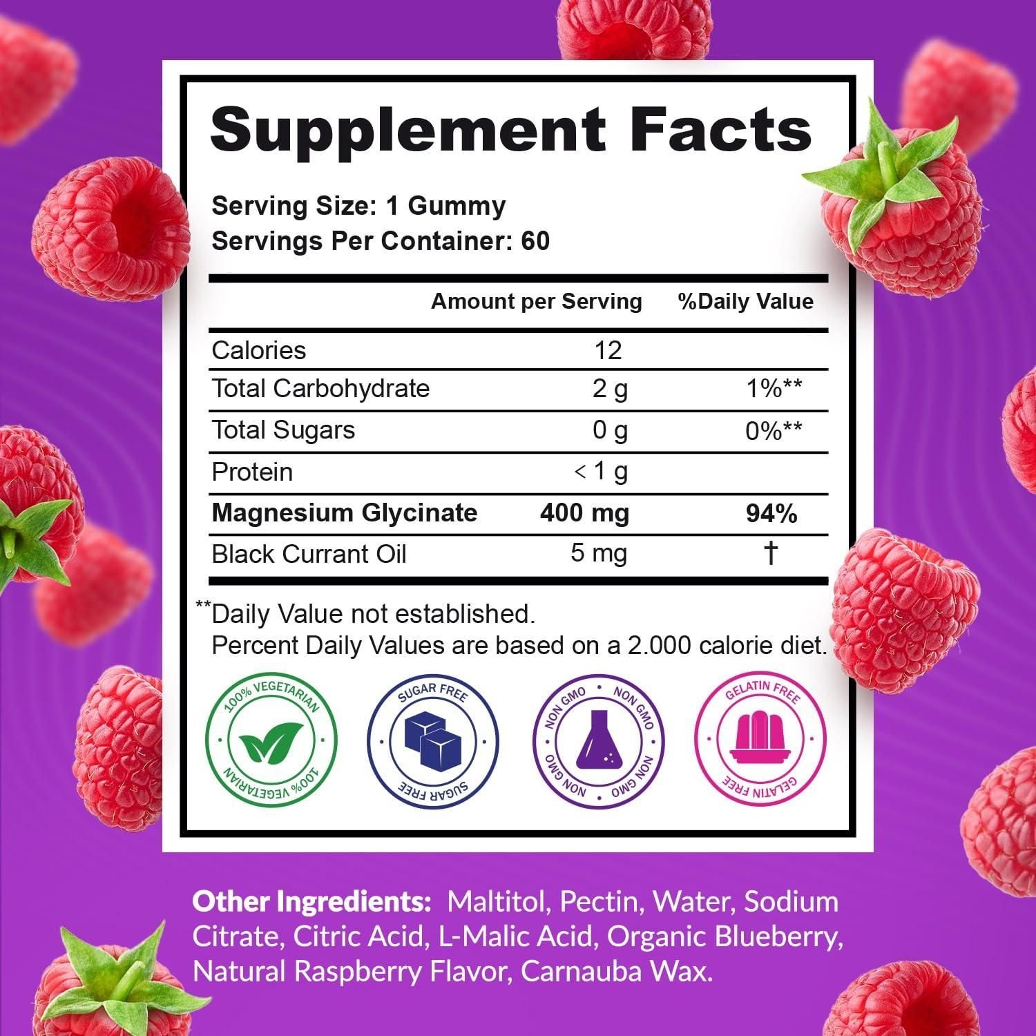 Home > Sleep Support Magnesium Glycinate Gummies 400mg Raspberry with Blackcurrant Oil Sugar Free Non GMO Gluten Free 60 Days