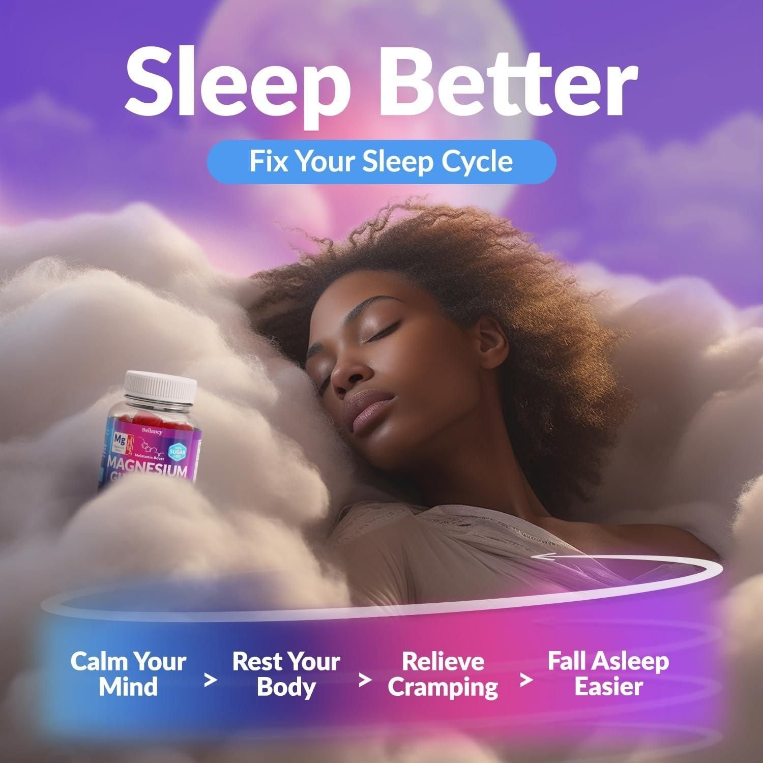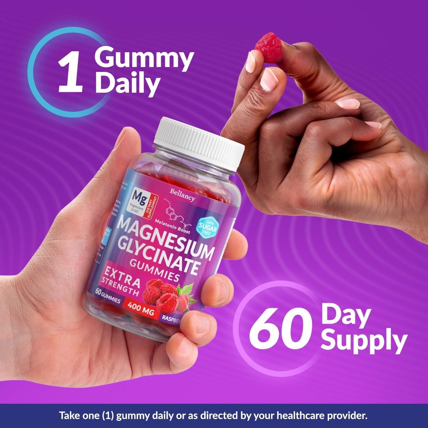 1.restful sleep all night: we made our chewable magnesium glycinate 400mg to help you get more restful sleep; these magnesium supplement gummies can support sleep cycle so you wake up feeling refreshed